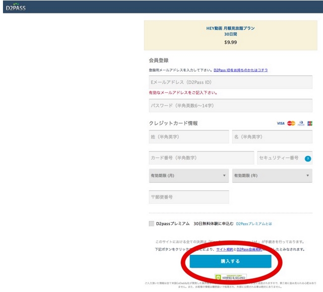 クレジット情報はD2PASSサービスの画面での入力となります。